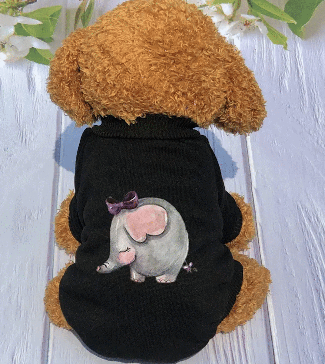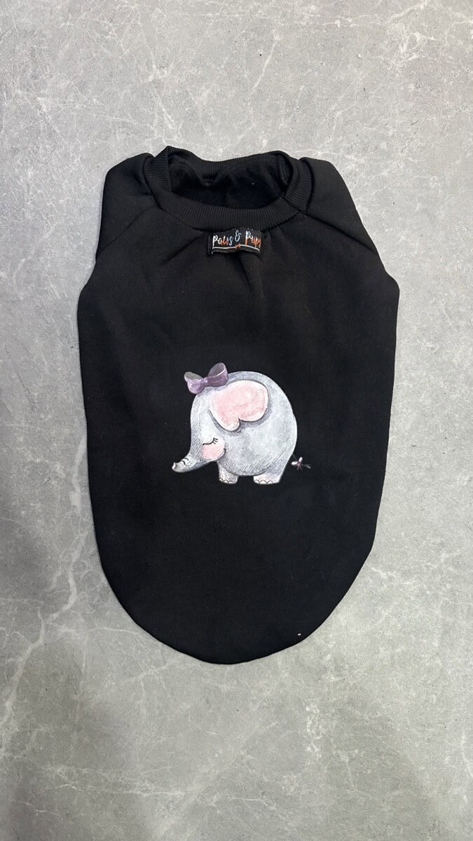 Give your fur baby the perfect blend of comfort and style with this warm, cozy black sweatshirt featuring an adorable camel and elephant print. Designed specially for small dogs, this soft sweatshirt keeps them snug during chilly days while adding a cute, eye-catching touch to their everyday look.