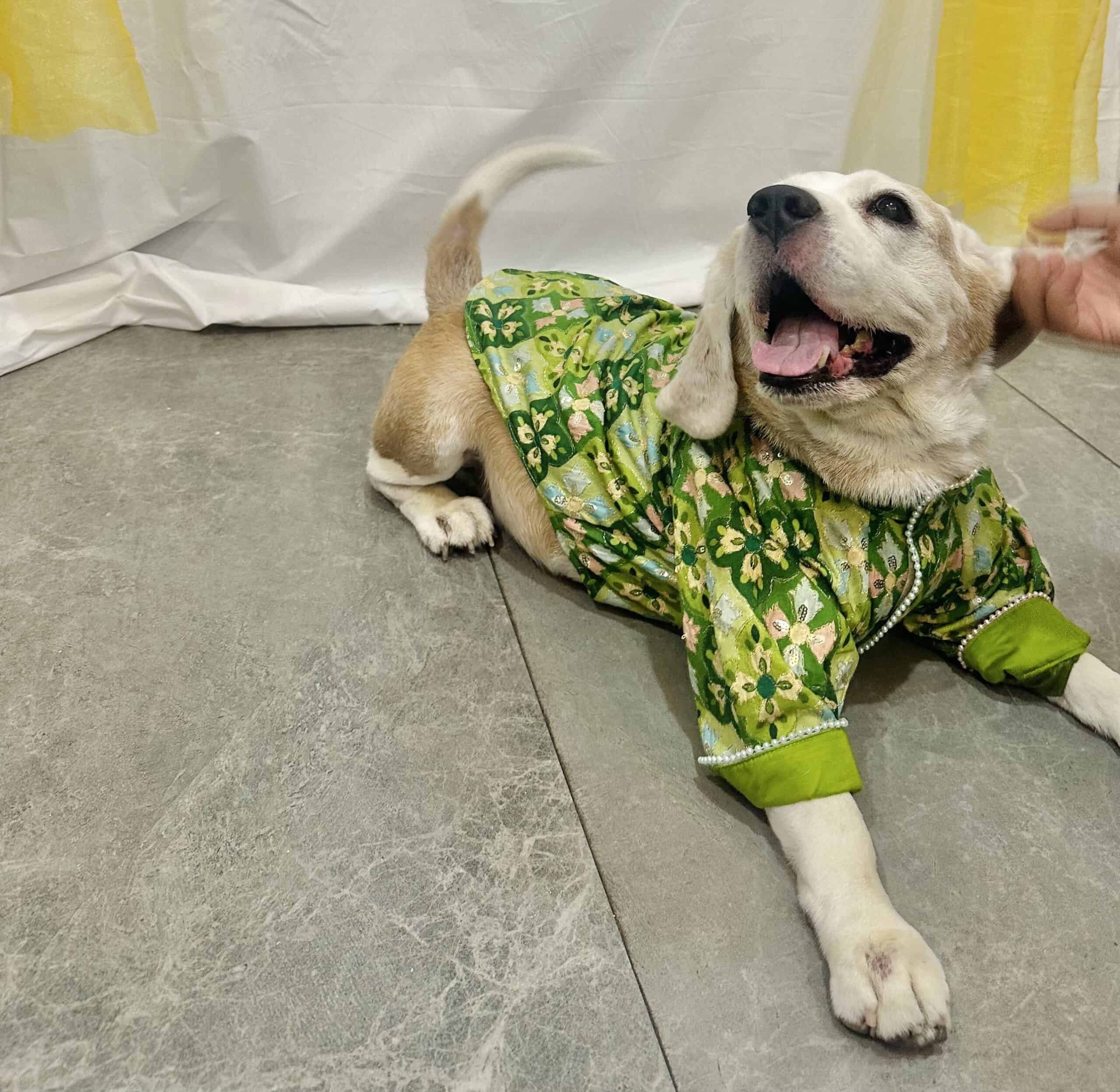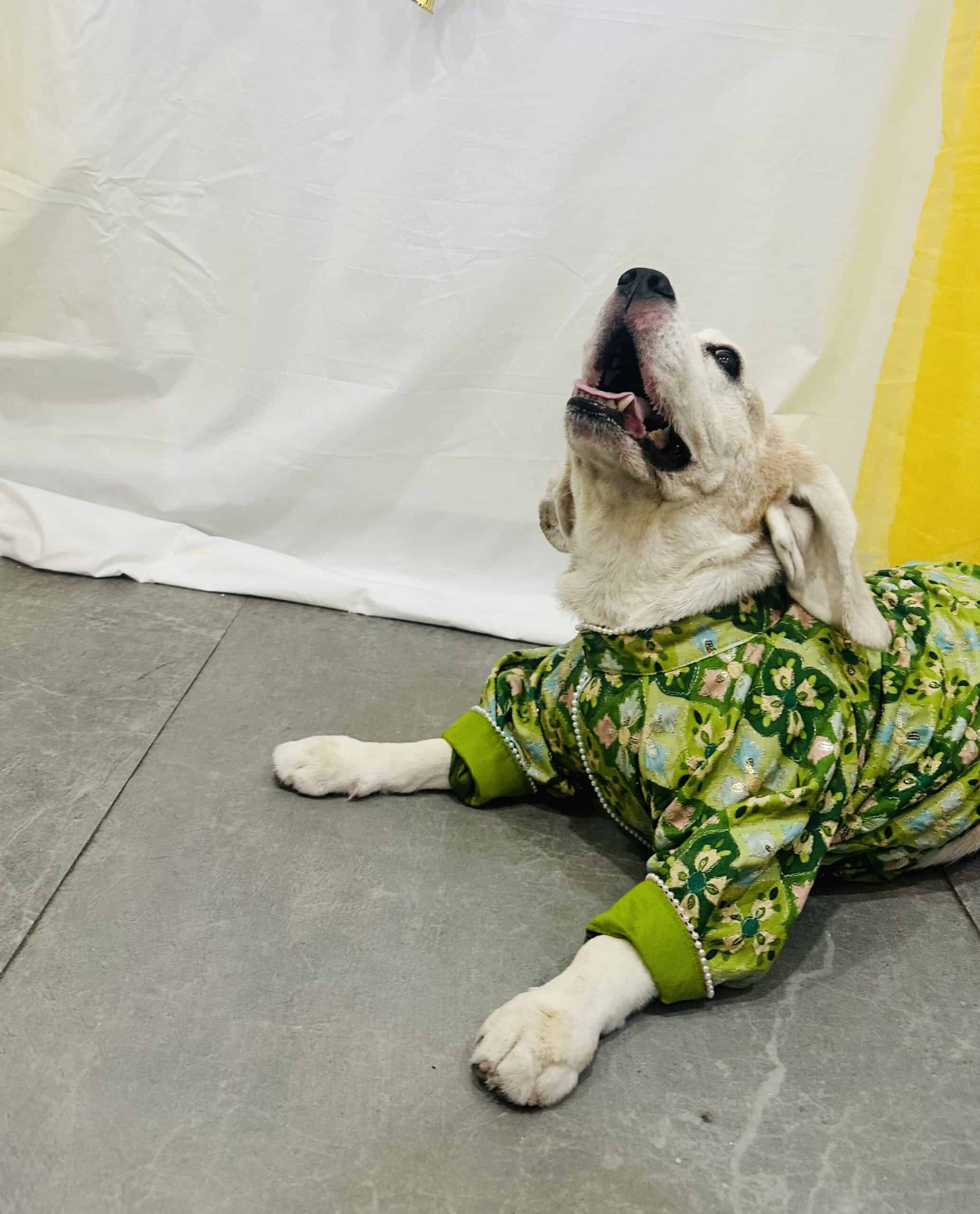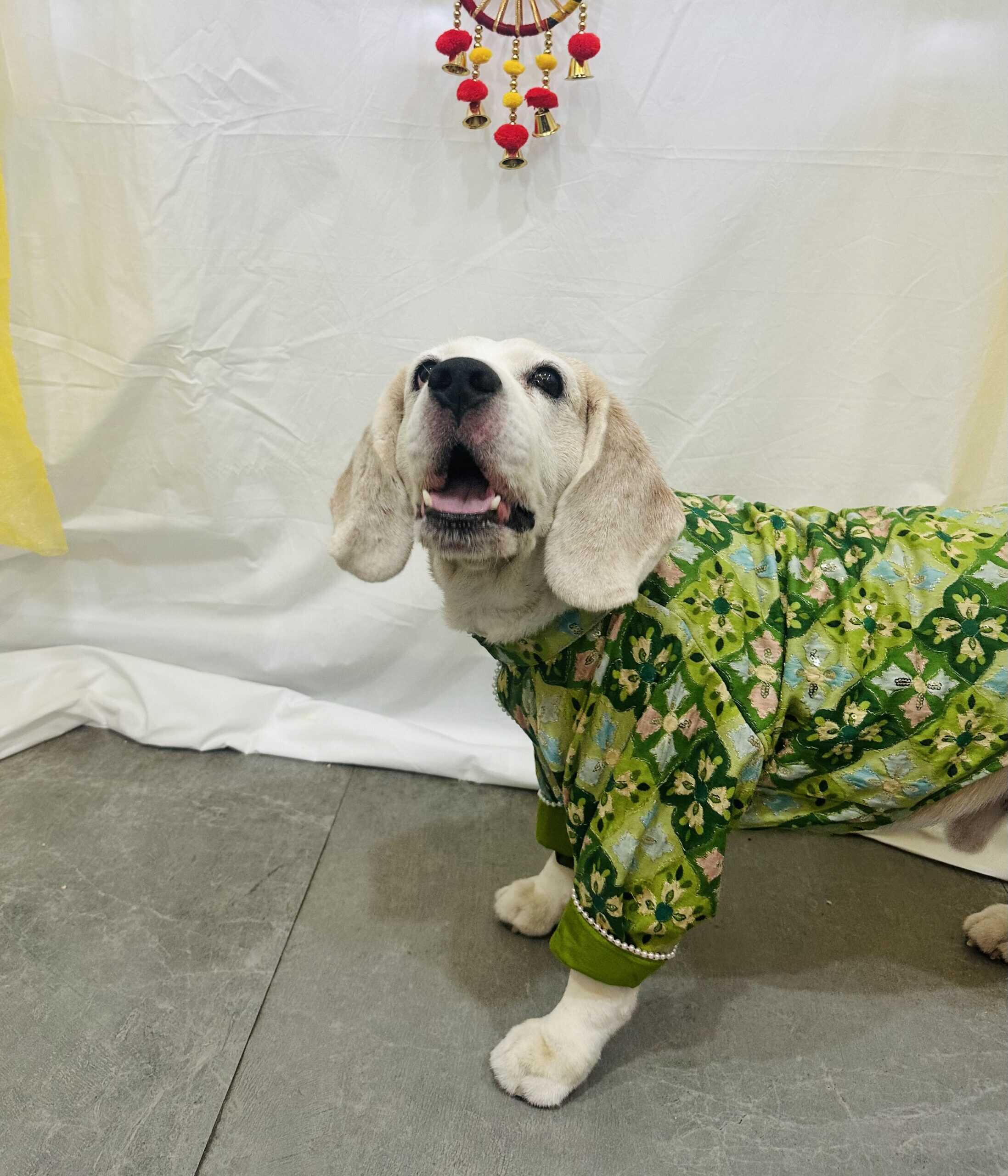 Embroidered Green Dog Kurta