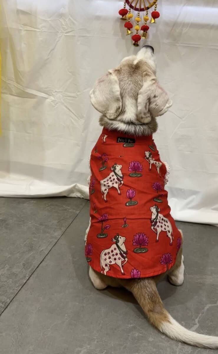 RED Pichwai Print Dog Kurta